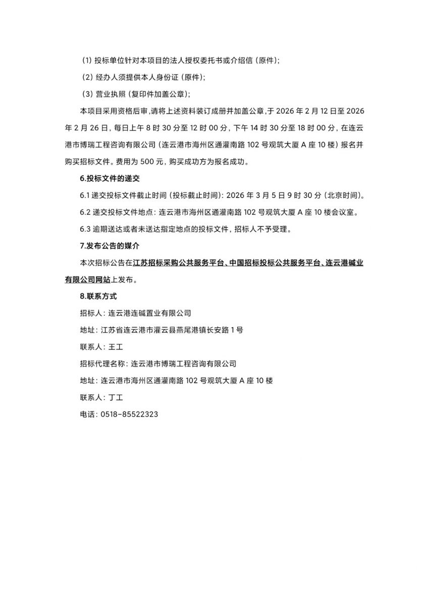 連云港連堿置業(yè)有限公司生產(chǎn)系統(tǒng)部分輔助類業(yè)務(wù)外包招標(biāo)公告